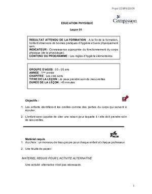 Le programme du curriculum du domaine physique pour les enfants âgés de 3 à 5 ans (Année 1) comprend 42 leçons individuelles qui aident l’enfant à se développer physiquement. Cet ensemble de leçons comprend des sujets tels que les parties du corps et l'hygiène corporelle, ainsi que des leçons sur la santé, la nutrition et la sécurité. Chacune des 42 leçons comprend : des plans de cours (durée, objectifs, préparation et matériel), un contenu comprenant des instructions détaillées sur la manière d'enseigner le sujet de la leçon, des jeux et des activités interactives pour améliorer l'apprentissage, ainsi qu'une évaluation de l'enseignant. Les leçons et les activités sont destinées à être utilisées en groupe.