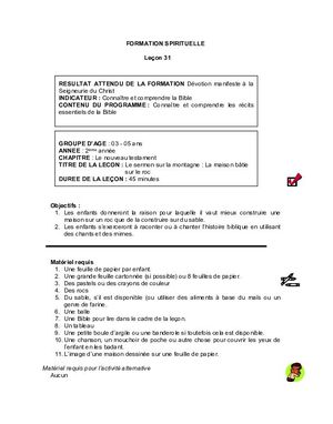 Ce document fait partie de: Curriculum - Domaine Spirituel - 3 à 5 ans - Année 2
