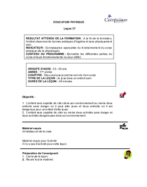 Leçon 37: Je joue dans un endroit sain